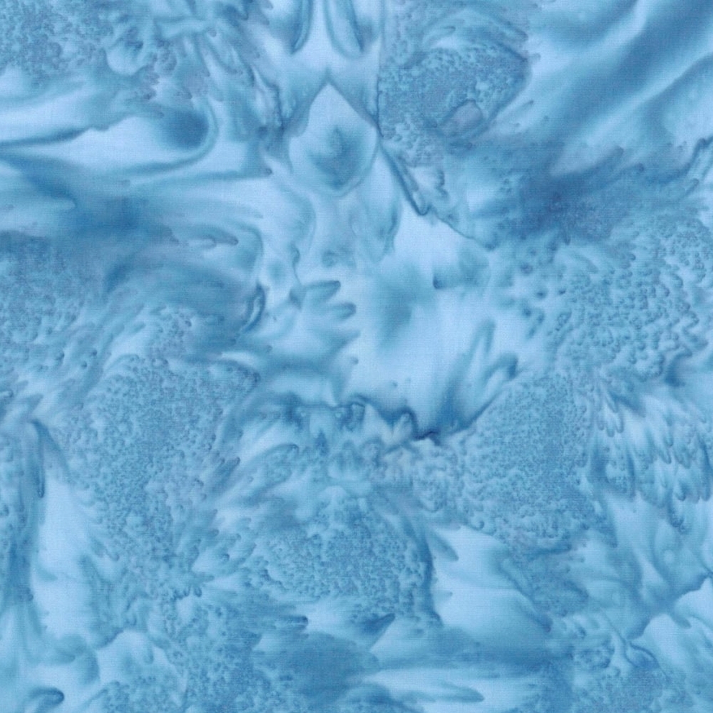 En skøn ensfarvet batik i melerede støvede blå toner fra Hoffman fabrics.