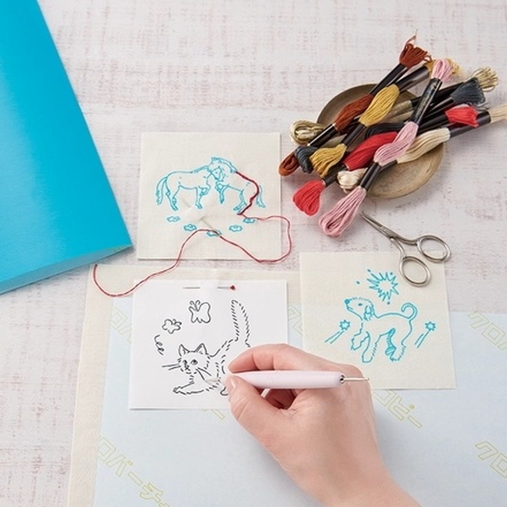 Bruges til at overføre broderimønstre, linjer, indsnit og lignende til stoffet.