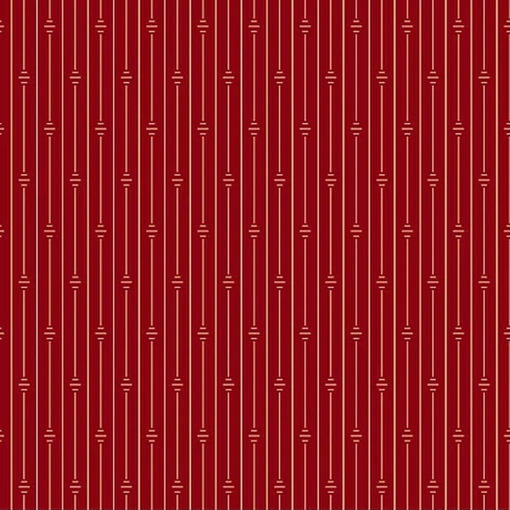 Lækkert patchworkstof i country stil i støvet mørkerødt med tynde hvide streger, nogle der danner illusionen af cirkler.