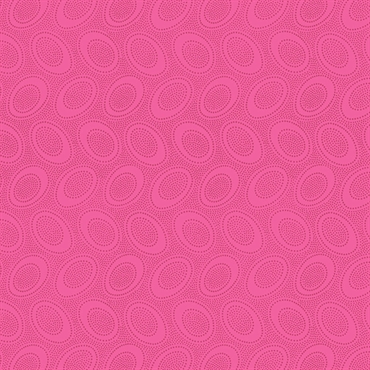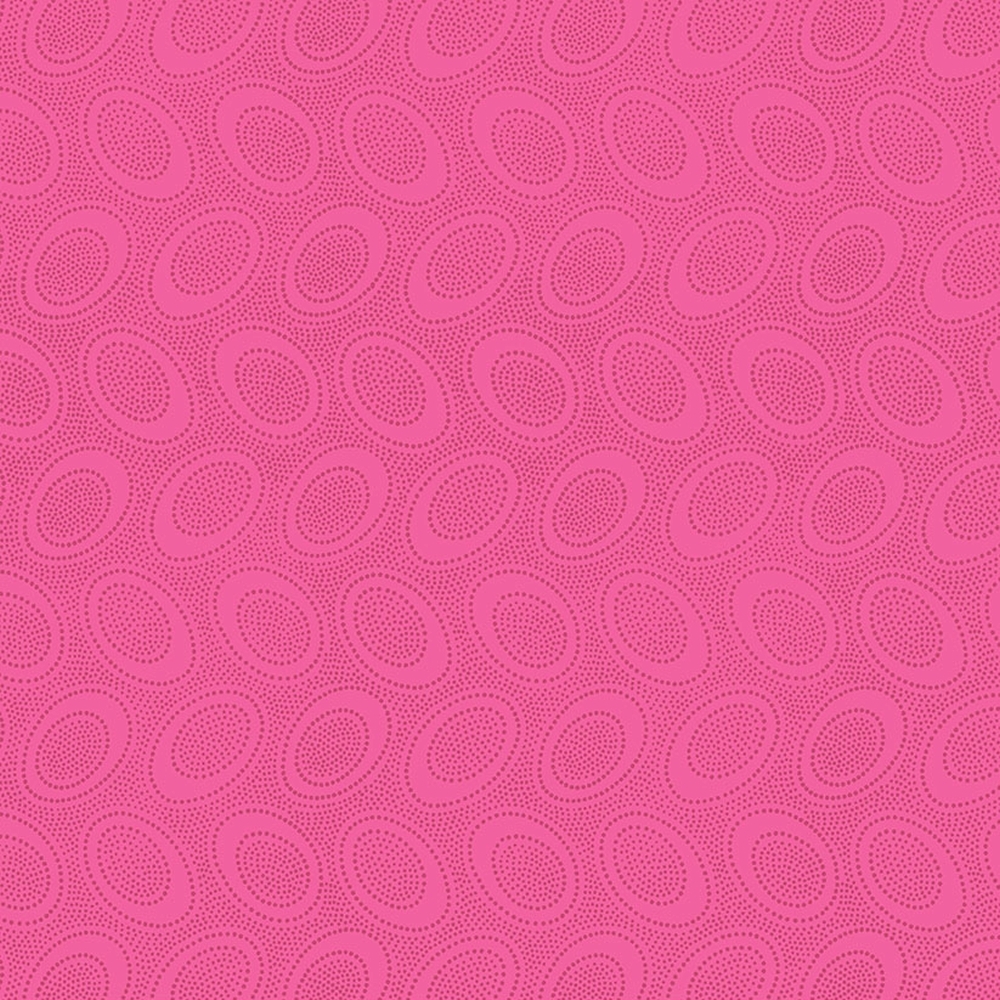 Med bittesmå grålilla prikker der danner større cirkler på en intens pink baggrund.