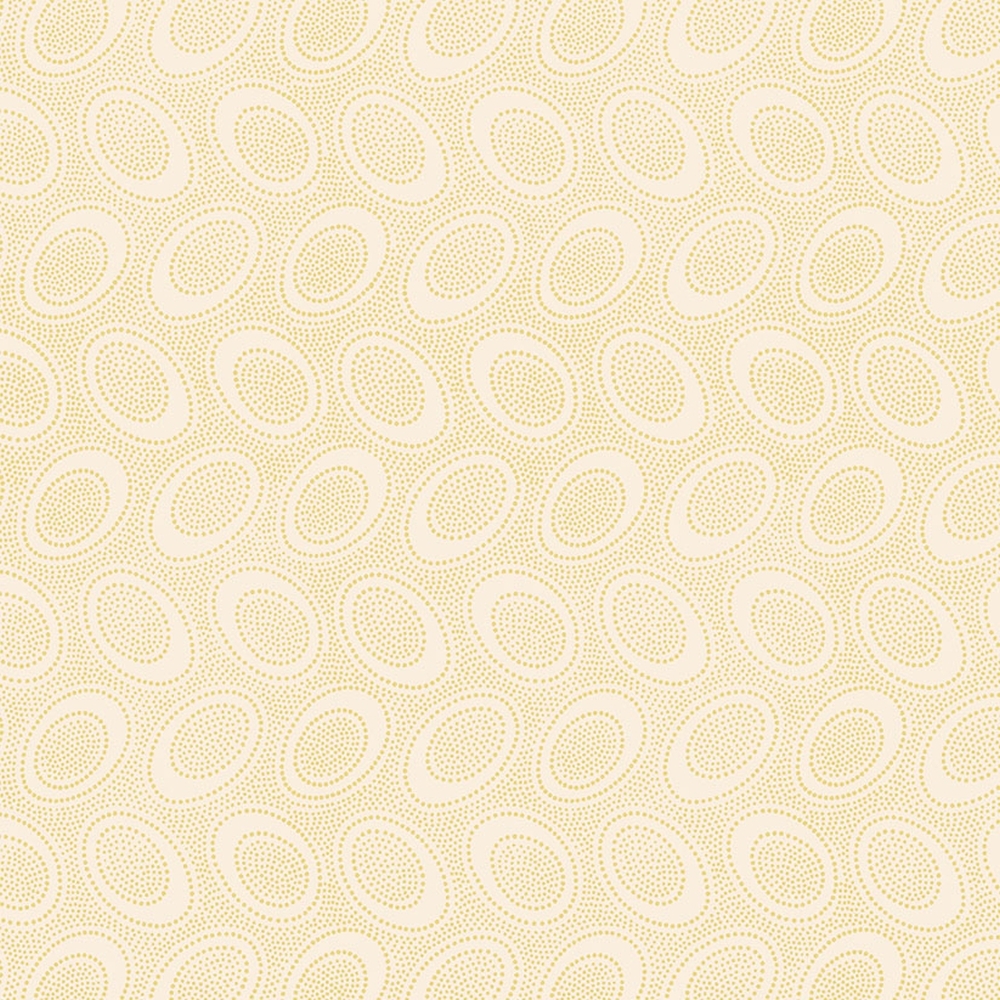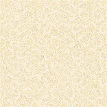 Med bittesmå lysegule prikker der danner større cirkler på en cremehvid baggrund.
