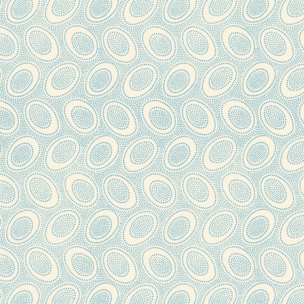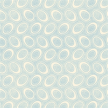 Med bittesmå blå prikker der danner større cirkler på en cremehvid baggrund.