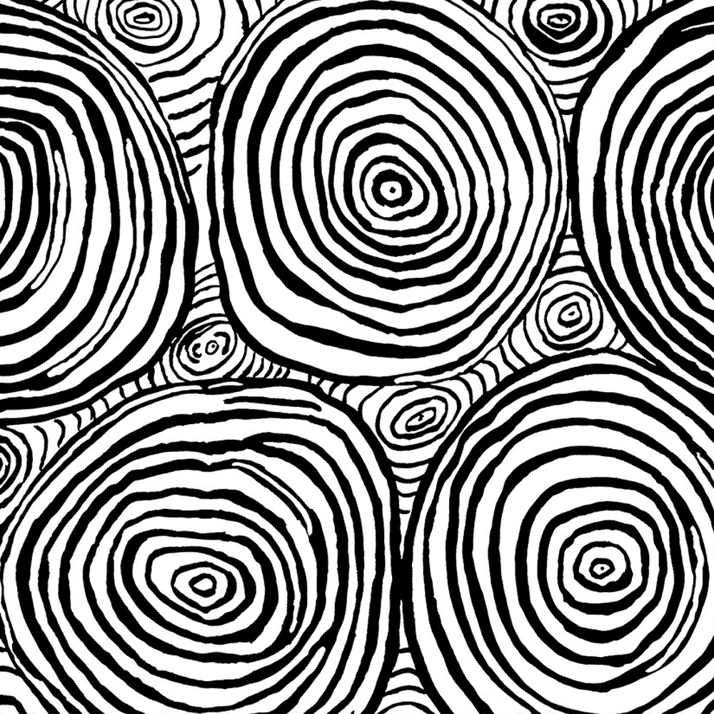 med uregelmæssige sort cirkel mønster på hvid baggrund. Ligner løgringe.