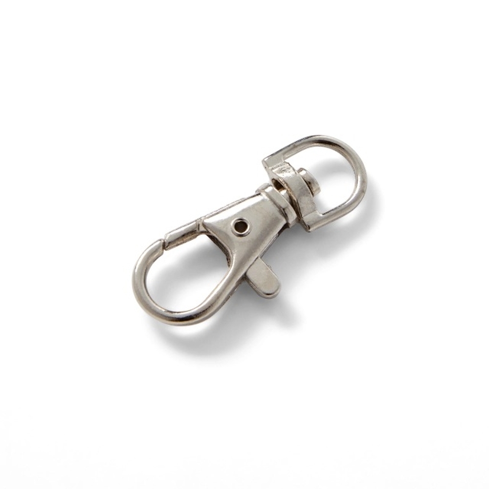 Karabinhagen er sølvfarvet og lavet af en zinklegering.