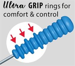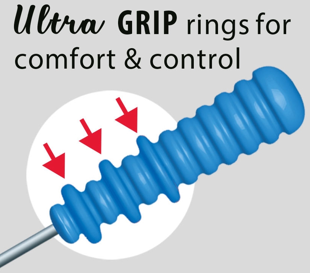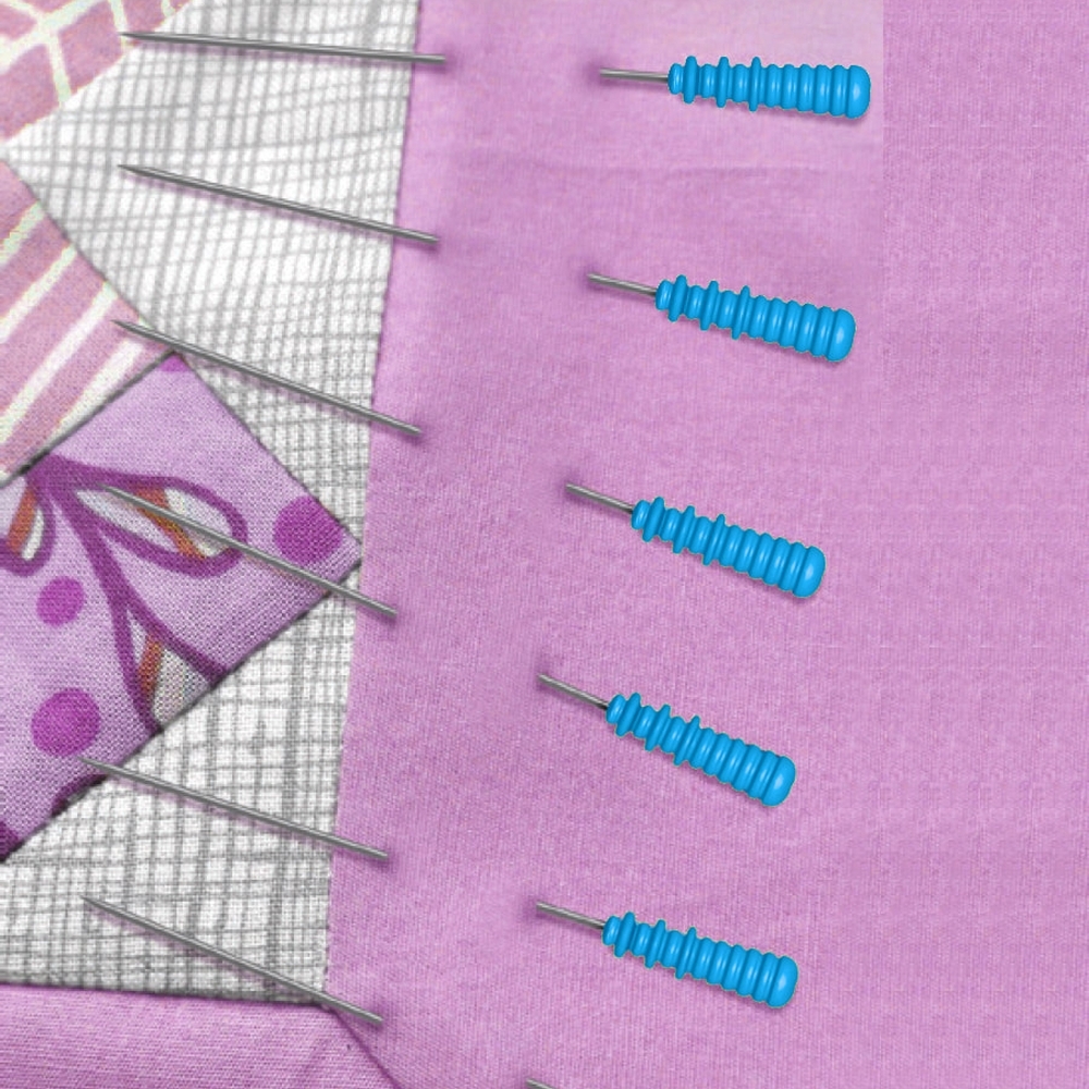 Tynde knappenåle med rillede knopper og ultra grip ringe der gør nålene ekstra nemme at holde og kontrollere.