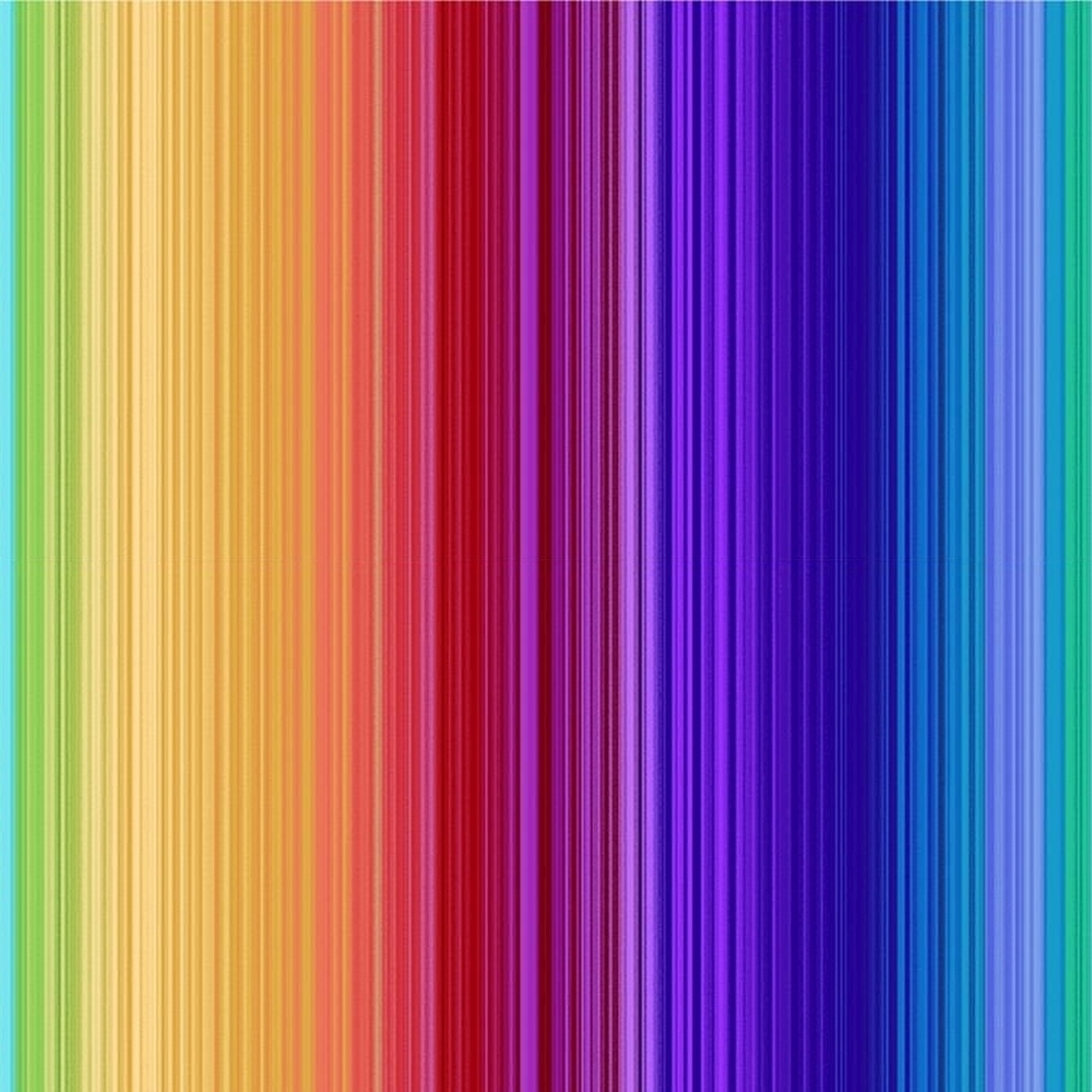 Smukt patchworkstof fra Timeless Treasures med striber i forskellige bredde i alle regnbuens farver.
