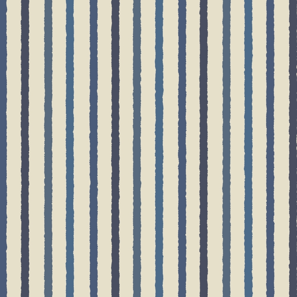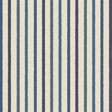 Lækkert patchworkstof fra RJR fabrics i beige med grove striber i fire forskellige farver blå.
