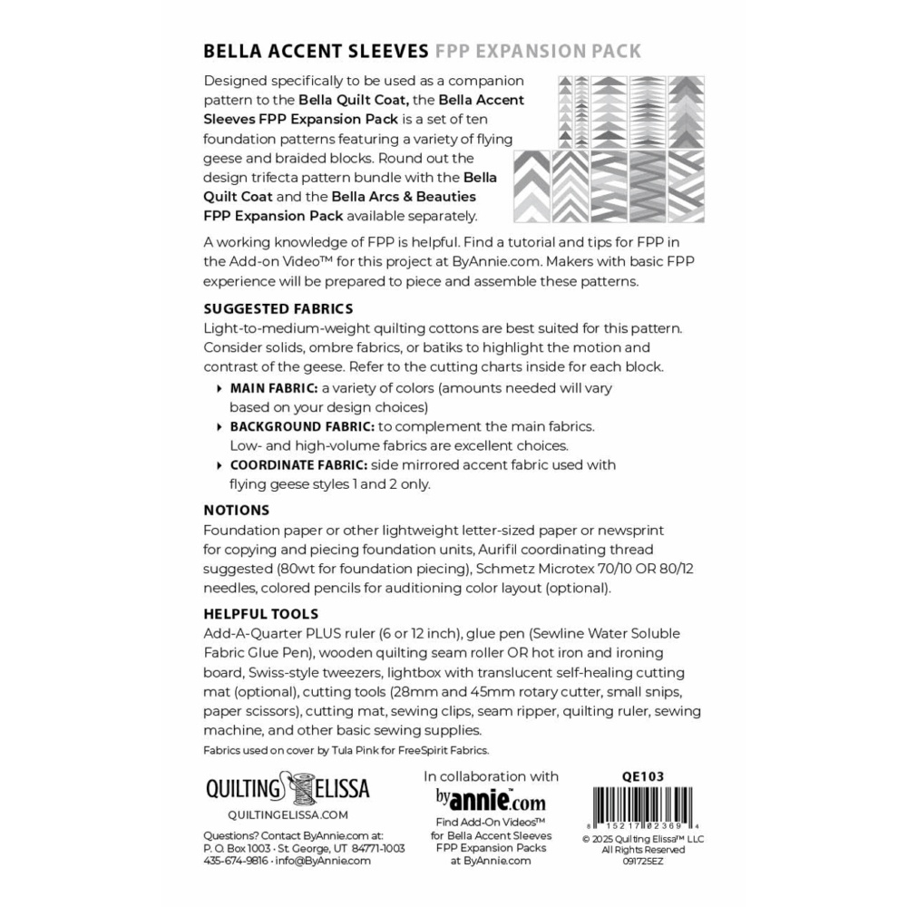 Tillægs pakke til Bella quilt Coat fra Quilting Elissa i samarbejde med By Annie, til pynt og styling på ryggen og fronten.