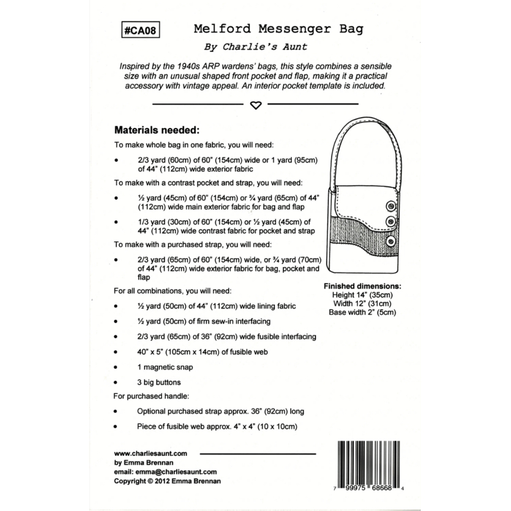 Charlie's Aunt  - Melford messenger bag mønster
