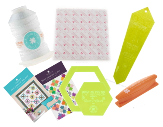 Bånd og lynlåse, opbevaring,lim, markeringsværktøjer, nåle, quilteskabeloner, smarte gadgets, papir stof ark til at udskrive billeder på stof, quilt-layout markører til dine fantastiske quilts, frysepapir, foundation-papir og meget mere...